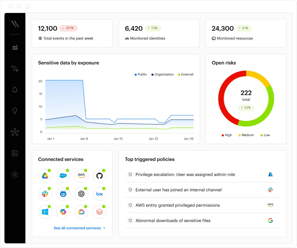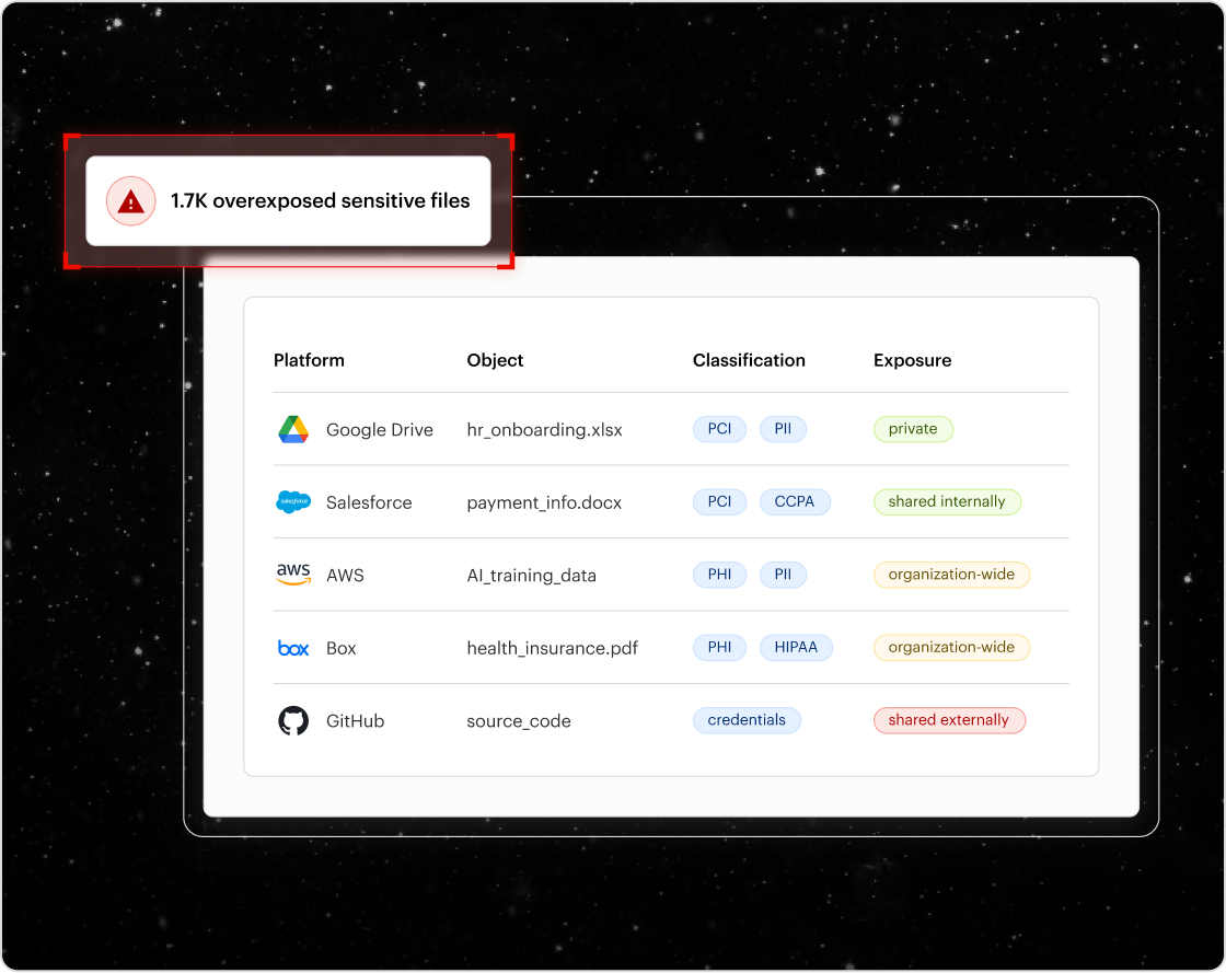 Identify overexposed, stale, or misconfigured data that could lead to breaches, including excessive permissions and publicly accessible files.
